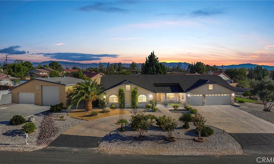 This perfect home is nestled in the highly sought-after neighborhood of Apple Valley. This stunning property offers 4 bedrooms and 2 1/2 bathrooms, situated on a spacious corner lot. This home boasts not only a breathtaking view of the majestic mountains but also captivating city lights that will surely leave you in awe. In addition to the main residence, this property also features a separate detached 36x36 RV/shop garage with a 12ft RV roll up door and an 8ft single car roll up door, providing ample storage and space for your vehicles and hobbies.