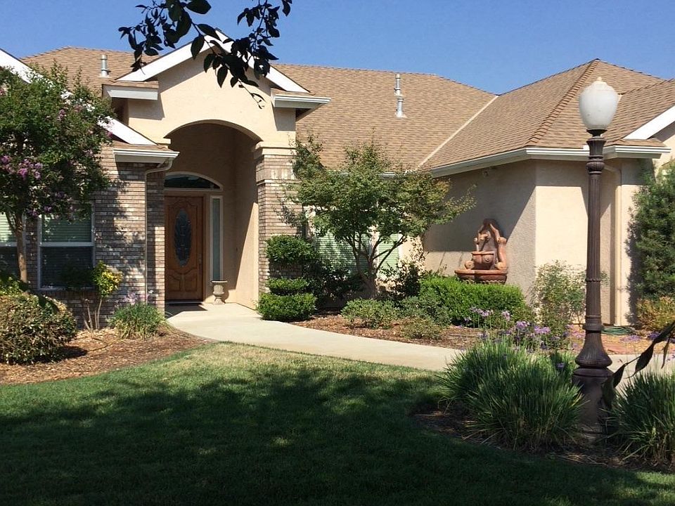 One look will do on this Kelly Tipton custom home features an open concept floor plan that is perfect for entertaining. Kitchen has a large eating bar, ample storage and counters, pantry and dining nook. Family room has an entertainment center built-in unit and a wood mantled fireplace equipped with gas logs and quick lighting to create any mood. Canned lighting in the family room and kitchen is great for added ambiance. Formal dining room is perfect for additional seating. Master bedroom suite is spacious with a slider to the covered backyard patio, a walk-in closet and additional wall closet. The bath has a soaking tub, shower and double vanity sinks. A den and full bath on the other side of the home could be an ideal guest room. This 2+ acres surrounded by walnut orchards has plenty of parking, over-sized 30x45 shop with 14' roll-up garage doors, and walnut trees. There are many details like coffered ceilings, wood crown molding, solid doors and more. Truly a spectacular home. Call today!