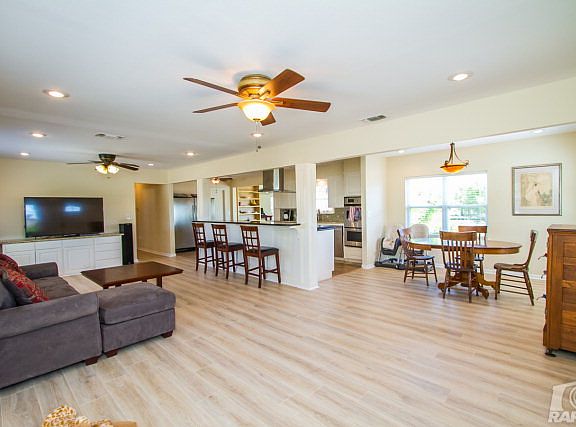Very Nice updated home on an acre lot with views of Lake. New paint and flooring. Open floor plan. Split bedrooms. Two living areas. Kitchen has granite w/stainless appliances and huge commercial refrigerator and double oven. Large master & master closet with Jacuzzi tub. 3 outbuildings with tons of storage and a carport. No neighbors close by and a park next door. Large yard with fruit trees. Lots of character and space!!