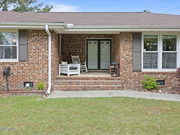 Welcome home to Brices Creek! This gorgeously maintained brick ranch with attached garage was built to stay. As one of the most eye-catching homes in Snug Harbor, this home boasts 3 bedrooms and 2 full bathrooms with a formal dining room, living room, and warm den. Completely wired and setup for a Generac Generator, this home is ready for hurricane season. Updated LVP flooring, fixtures, and country cabinets complete this updated home. Situated on over an acre, the double lot features a gorgeous black ornamental fence that fully encompasses the back yard. The detached garage is perfectly set up for entertaining with a covered patio, 2 additional car garage, and an over 500 square foot heated and cooled area for a workshop, bar, craft area, or studio. This space is perfect for a home business of any kind with its own electrical panel, 220 outlet, and entrance. Less than a quarter mile from Merchants Grocery, with available boat ramp to Brices Creek, this one of a kind home is move in ready for its new owner!
