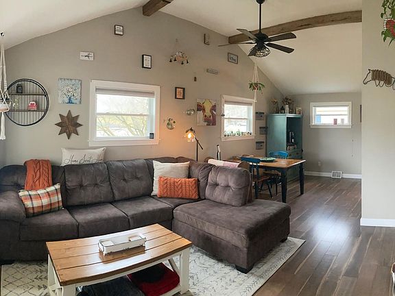 This well maintained ranch offers 3 bedrooms and one bath, cathedral beamed ceilings, and an easy open floor plan. The partially finished basement has plenty of natural light, and walks out to a beautiful back yard. The yard has a matching shed, raised garden beds, and a second newly built shed/coop. Convenient location, close to shopping and 95.
