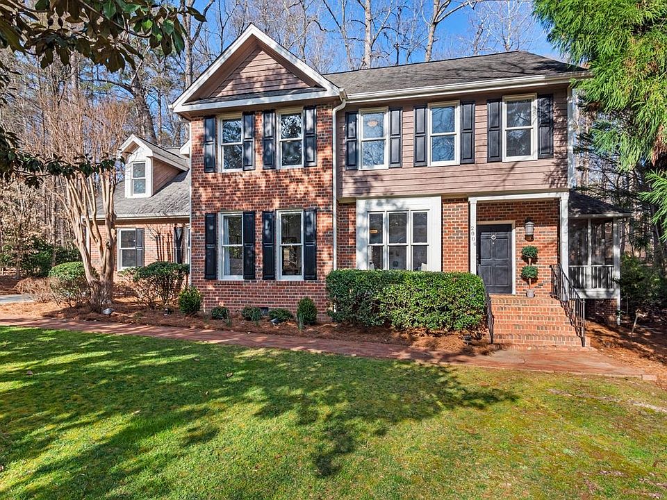 You’re sure to be a CAMDEN CRAZY in this stylish cul-de-sac retreat on a wooded .47 acre lot just minutes from CHHS. Nearby access to the extensive Bolin Creek trail system for your off-season training. Take a break from work to check the latest standings in your dedicated office with panoramic views. Only the abundant wildlife will hear you yelling at the refs when you stream the game on the huge screened porch. Celebrate your team’s victory in the battle of the blues with a bonfire of your own and room for all on your 46-foot deck. Your shot could be the buzzer beater that drives the crowd wild.