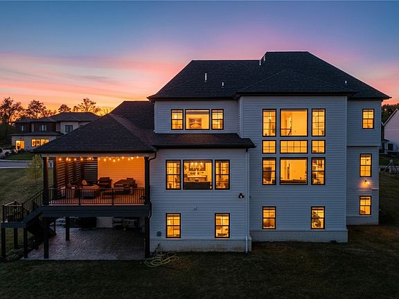 Welcome to the essence of modern living in this Infinity newer home that suits all your needs. Beautiful Oak flooring graces the main floor featuring a spacious 2 story family rm w/floor-to-ceiling limestone fireplace & wall of windows that overlooks private view. Remarkable kitchen showcases custom plaster range hood, quartz counters, substantial island, luxury appliances w/open eating area overlooking backyard. Beverage bar displays beautiful cabinets, sink & wine refrigerator. Stunning dining rm w/moldings & arches, large office w/glass sliding doors & custom bookcases. 5th bedroom on main floor is perfect guest/in law suite w/entrance to full bath. Head up staircase that overlooks family rm before entering impressive primary suite w/vaulted ceiling. His & hers closets lead to the luxurious bath w/oversized shower & much more. 3 additional bedrooms suit all your needs. Lrg walk out basement w/fin gym, decked out covered patio & deck, private green space to corner, upgrades galore!