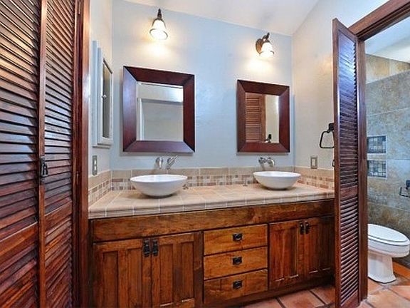 Completely remodeled. Imported Spanish tiles, wood floors, vessel sinks, rain head shower, stainless steel appliances, french doors, fireplace, epoxy flooring in garage, new A/C, ceiling fans, fresh paint, tree house, solid wood framing around bed/bath entry doors, surround sound, covered tiled patio, bull nosed corners, walk-in closet in master bedroom