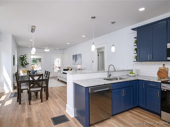 Back on the Market due to buyer job loss. Get instant equity as this house just appraised @ $280,000!! ASK ME HOW TO GET $15,000 TOWARDS YOUR DOWN PAYMENT OF THIS HOUSE?? ***Complete Waterproofing System in Basement with Lifetime Transferable Warranty to new buyer*** This little beauty has been totally updated to meet the needs of your growing family with updated mechanicals & modern touches. Relax on your large covered front porch or entertain in the open concept living area to include a fully updated Kitchen with all new appliances & custom Kraftmaid cabinets. Enjoy 2 bedrooms and a full bath downstairs with the entire upstairs devoted to the primary bedroom and ensuite bath. You will also find ample extra storage in the partial basement. This house is right in the middle of local shopping & dining, you are also minutes away from Downtown Louisville. The seller is a licensed broker in Indiana