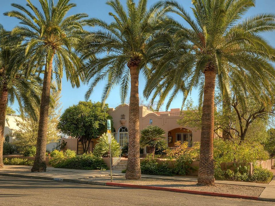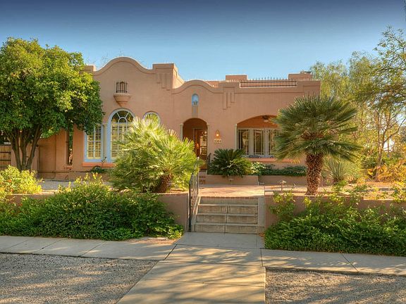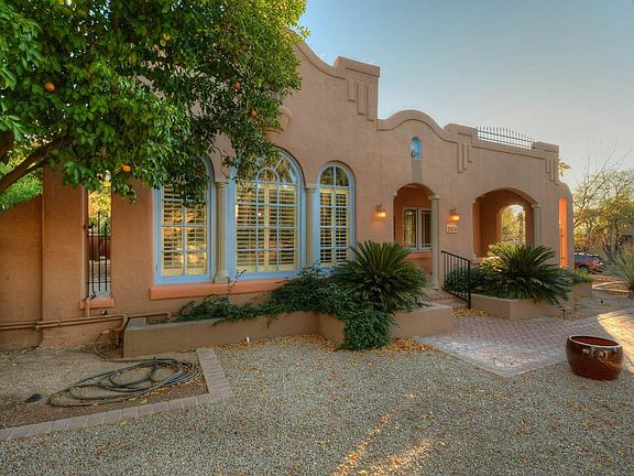 A GEM 4th St. corner lot home in the highly desirable University Manor section of Historic Sam Hughes. Immaculate, with beautiful large arched windows and coved high ceiling. Custom shutters and wood floors throughout. Extensive recent remodel now provides modern, energy-efficient electrical, irrigation, and water systems that are wi-fi compatible. Features excellent, well proportioned floor plan. Luxurious, mature landscaping, with covered front porch; back brick patio area offers lovely private entertaining. 161 SF studio and 339 SF basement. (Basement not included in house SF). Great cycling neighborhood, 3rd Street designated Bikeway, with easy walk to Link Streetcar, U of A, Main Gate Square, University Starbucks, Rincon Market, Himmel Park (pool+library) and Banner (CLICK MORE)