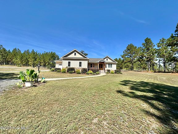 Enjoy outdoor living with a welcoming front porch featuring a barrel beadboard ceiling, and a spacious screened back porch with recessed lighting, ceiling fans, and a beadboard ceiling. Just outside, a grilling deck is perfect for entertaining. Guests will also appreciate the circle driveway at the front of the home. This move-in ready home combines comfort, function, and custom craftsmanship—inside and out! Located 2.5 miles from Pinehurst, just before Foxfire Village, this home has NO HOA and is NOT IN CITY LIMITS. Located just before Foxfire Village bring your chickens and plant a huge garden!