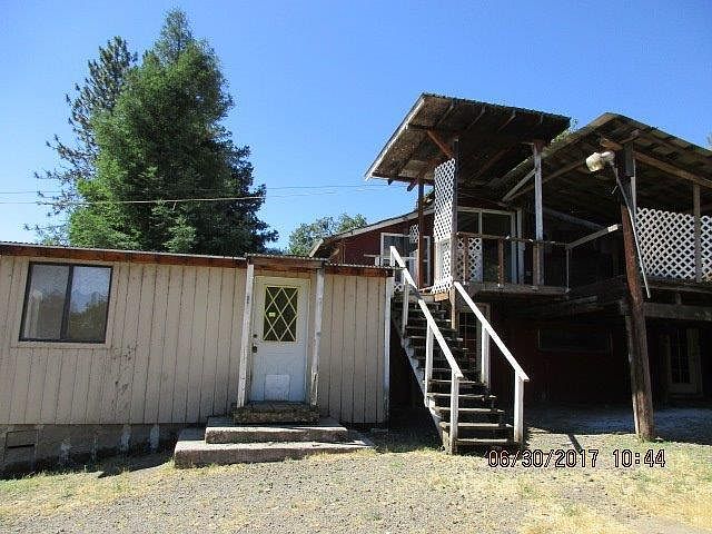 If you have a buyer looking for privacy this could be the property for them. About 5 mile out of Gold Hill. The home is 1908 sq. ft. on the main level with a large kitchen and mud room, large living room plus a den, 2 full bathrooms, one with the laundry hookups. The upper level of the home is also finished with 1036 sq. ft. per county records but there is no access from the main level so not included in the sq. ft. The property offers a barn, chicken coops, a corrals area plus a seasonal pond. About 1/3 of the property is cleared with the rest treed mountain side. The home is greatly distressed and not financeable but holds the home site.