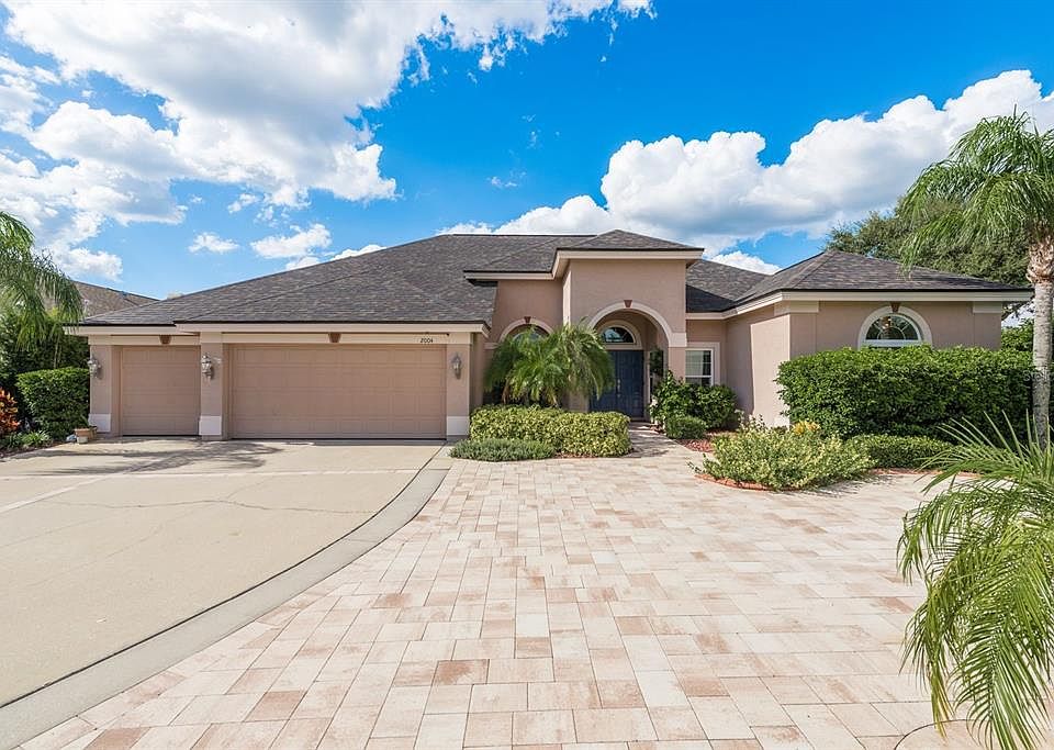 Located in the Fox Wood gated community of Trinity, this 5-bedroom, 4-bathroom home spans over 3,500 sq ft features a private pool, outdoor kitchen, 2 indoor AC Units, garage with mini split AC, updated bathrooms and kitchen, and so much more! The driveway features extra pavers for additional parking while the three-car garage boasts a mini-split AC, epoxy floors, dual electric vehicle charging stations (including a Tesla Series 1 and 220v charger), and a hurricane-proof garage door installed in 2019. Other recent upgrades include hurricane proof windows and sliding glass doors (2018), a new roof (2022), downstairs AC (2022), a whole-house water softener system, an instant tankless hot water heater, and a home office with hardwired connections and Wi-Fi access indoors and outdoors. A full-house generator powered by natural gas ensures uninterrupted power, while a comprehensive camera security system provides peace of mind. Inside, wood-look tile flooring, modern fixtures, and California Closets in all bedrooms enhance the home’s style and functionality. The bathrooms have been remodeled and the kitchen is updated with granite countertops with matching backsplash, a walk-in pantry, and a kitchen island perfect for gatherings. The primary suite features a luxurious bathroom with split vanities, a freestanding tub, and a walk-in shower, along with a walk-in his-and-hers closet with a safe. A second bedroom offers a see-through fireplace and private bath with quartz countertops. Upstairs, the theater room includes a full bathroom, bar, refrigerator, and surround sound. The outdoor space features a fully equipped kitchen with dual ovens, a six-burner range, and a griddle, along with a (2022) solar-heated pool and hot tub with spillover and bubbler features. Schedule a showing today and experience luxury living with proximity to zoned schools, restaurants, Starkey Market, and shopping centers.