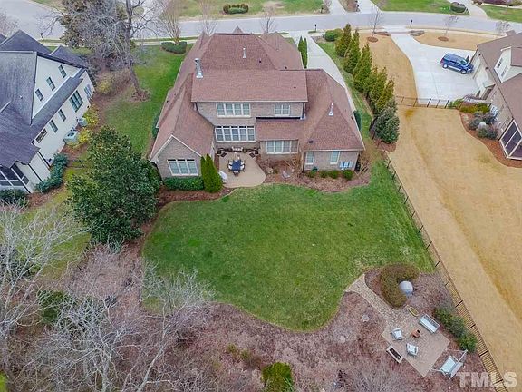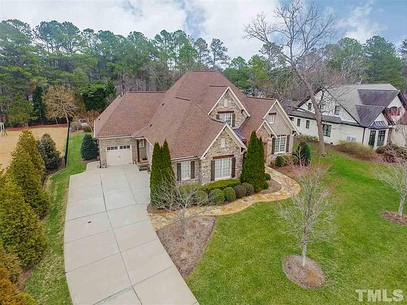MAGNIFICENT HOME IN GREYHAWK LANDING OF APEX! Custom appointments include brick & stone exterior, heavy trim throughout & 8 ft solid doors & doorways! Formal office & din rm! Gourmet Kit w/dual island, Wolf Range, SS appls, private office, butlers & walk-in pantry! Great rm w/stone FP & built-ins! 1st flr master retreat w/spa bath & huge WIC! Private well for irrigation w/no restrictions! 1st flr guest suite! 3 car garage! All bedrms w/bath private baths! Bonus w/wet bar! Tons of walk-in storage! Must see