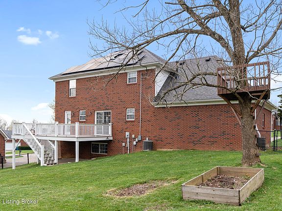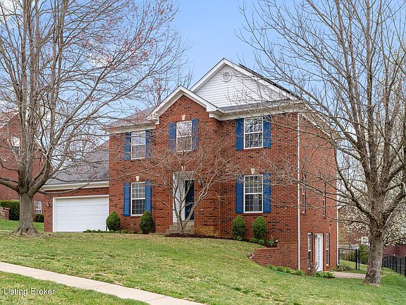 Welcome to this adorable 5 bedroom, 3.5 baths, all-brick home, with a finished walk-out basement, located in Prestwick Estates in Oldham County! Upon entering you will find newly refinished hardwood flooring in the foyer hallway and formal dining room. The living room boasts a cozy gas fireplace surrounded by built-in wood shelving and cabinetry, as well as, brand new LVP flooring and fresh paint. The large eat-in kitchen features granite countertops, new stainless steel appliances and ceramic tile flooring. The half bath and laundry room are both conveniently located just beyond the kitchen. Upstairs you will find the primary bedroom with a trey ceiling & a large walk-in closet. The ensuite primary bathroom has a double sink vanity, separate shower, a jetted spa bathtub and linen closet.. 3 additional bedrooms, all with double closets, another full bathroom and a built-in wall bookshelf in the hallway complete the 2nd floor. Down in the basement you will find a 5th bedroom, a full bath, a sizeable closet for extra storage and a huge second family room with an additional area that could be used as an office, craft, play or exercise room. The work bench and built-in shelving in the unfinished utility room provide even more storage space. Enjoy the expansive backyard on summer evenings out on the newly refurbished back deck. The new composite deck boards, not only look great, but are also very low-maintenance. The homeowners love and will miss their solar panels! They provide over 50% of their consumed energy, which makes their electric bills really nice, and the parts are under warranty until 2042! This home is move-in ready and conveniently located near shopping, restaurants, and I-71. Don't miss out and call today for your private showing!