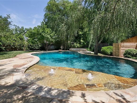 Your quiet retreat within the city limits awaits you at this beautifully kept home in Nichols Hills. With amazing curb appeal, this property guarantees a beautiful living experience inside and out. Nestled in this beautifully landscaped lot, this home has the wonderful features of beautiful hard wood and brick flooring, cathedral ceilings, Anderson windows and patio door (2015) in light filled family room off of kitchen, built-in hutches, granite and a 2018 painted interior. The back living room has large windows that overlook a BACKYARD FROM HEAVEN. Brick patio with a large gas fire pit and private fences, the in-ground, salt-water pool and hot tub is encamped with smooth stone and beautiful trees that make you feel as though you are at your own private spa. It's a must experience! Call today.