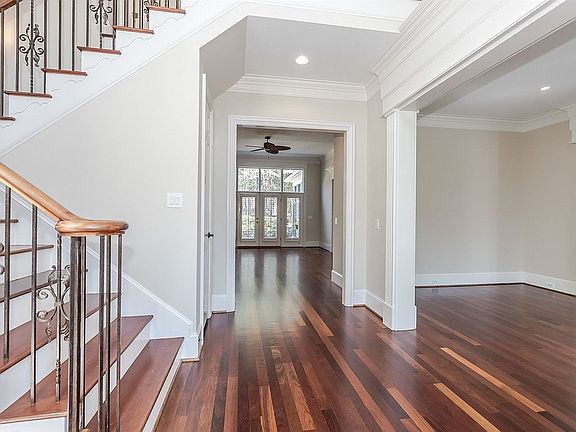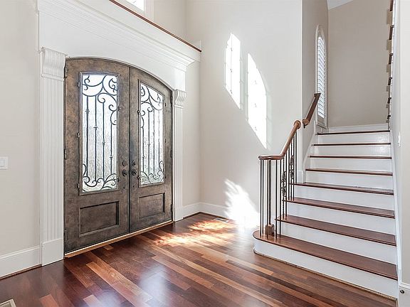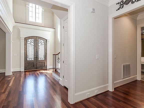 Gorgeous, French Country custom home on 1 acre lot. Beautiful wrought iron front doors, Brazilian cherry HW floors, open floor plan perfect for entertaining! Gourmet kitchen opens to family room, & screened porch overlooking fabulous backyard with stone patio, gas firepit, built in grill. Guest suite on main, Master suite upstairs with elegant master bath, and large dual walk in closets. Large secondary bedrooms, movie room, and office / craft room upstairs.