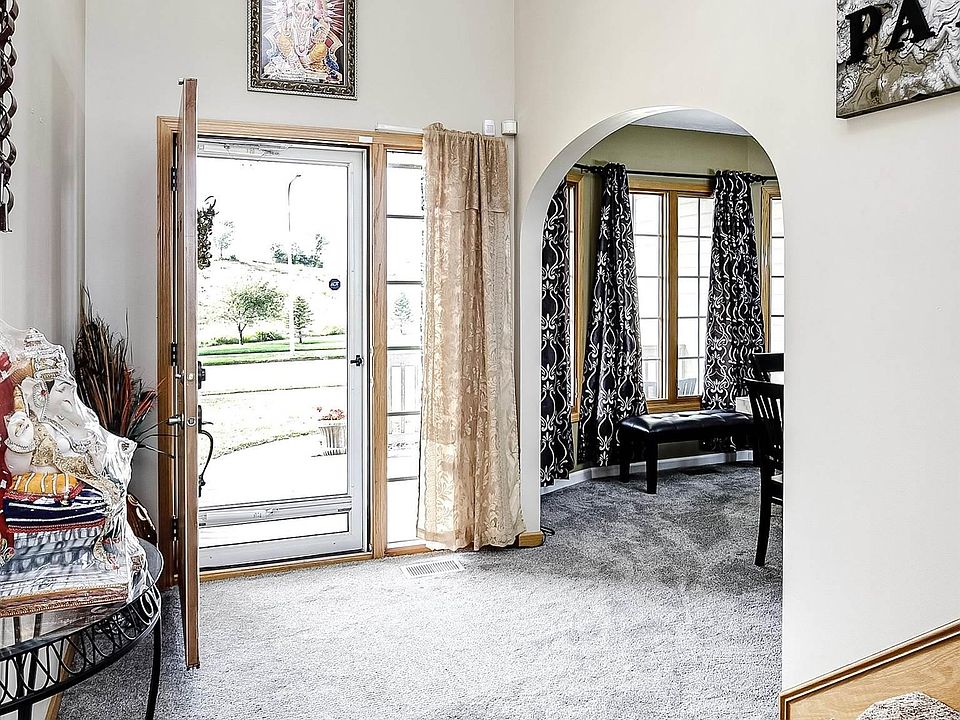 WOW! Over 4000 sq ft in this stunning 1.5 story home settled in on a large lot. The kitchen boasts beautiful tile floors, birch cabinets, granite counters & island, stainless steel appliances, eat-in dinette, workstation, & pantry. Stunning double-sided stone fireplace provides comfort in the dinette or spacious living room with soaring ceilings. Formal dining for all your gatherings & a large primary bedroom with en-suite featuring a whirlpool tub, & walk-in closet are all conveniently located on the main level. Three additional bedrooms, one with its own 3/4 bath, a spacious loft area that can be used as a huge closet or extra living space are all found upstairs. Walkout finished basement features projector & screen, large buffet, & 3/4 bath. Tons of storage space & shiny epoxy floors in the three car garage. Enjoy sunrise & sunset views from the freshly stained deck, & privacy with a fully fenced flat backyard. Home has been pre-inspected for peace of mind, making this the ONE!