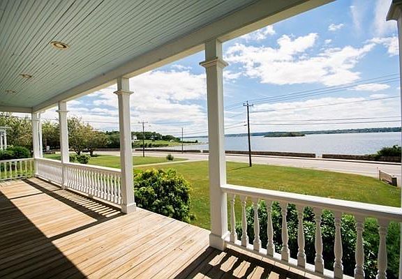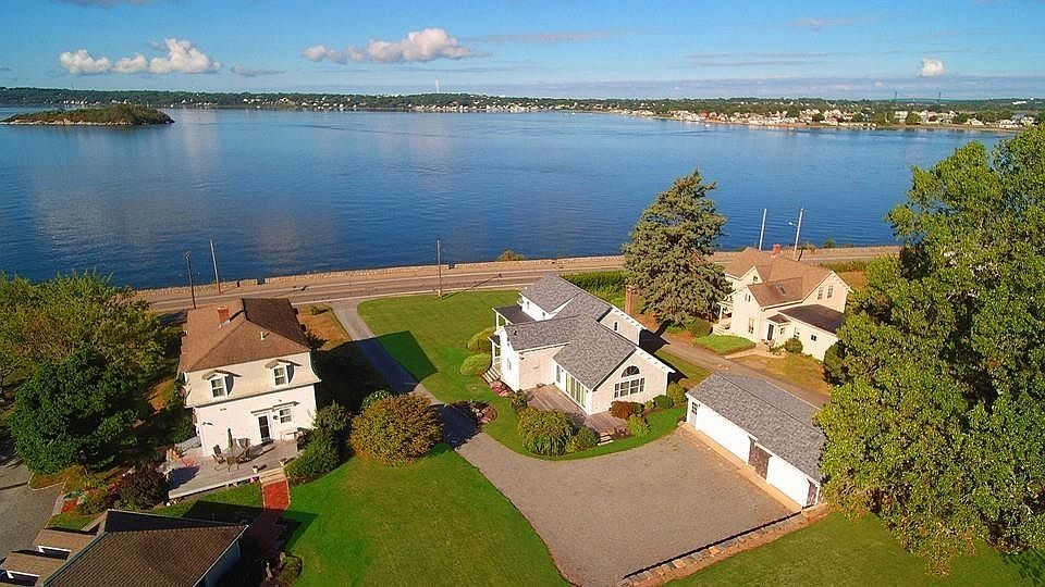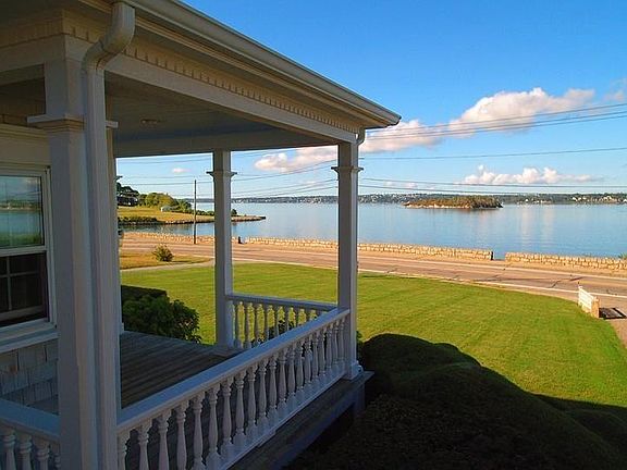 FRONT PORCH LOVERS- Watch the boats pass along the Sakonnet River and enjoy Panoramic Water Views, Spectacular Sunsets and the Summer breeze! NO FLOOD INSURANCE NEEDED! Wrap around porch on 3 sides and an exterior deck accessible through the family room, make this home perfect for entertaining. Beautiful sprawling lawn in the front and the back, is professionally manicured and shaded with a gorgeous tulip tree among many other mature plantings . Open floor plan on main level with hardwoods, sky lights and scenic Water Views of the river from every angle. Updated kitchen has Stainless Steel appliances and recessed lighting and exterior access to the porch. Oversize Master bedroom overlooking the Sakonnet River, could be re-converted to a 3rd bedroom. Large storage area on the 2nd floor. There is an additional Boat House/Garage in the back providing 4 garage spaces altogether. Brand new 4 zone furnace, new roof and many other updates. 4 bedroom septic.