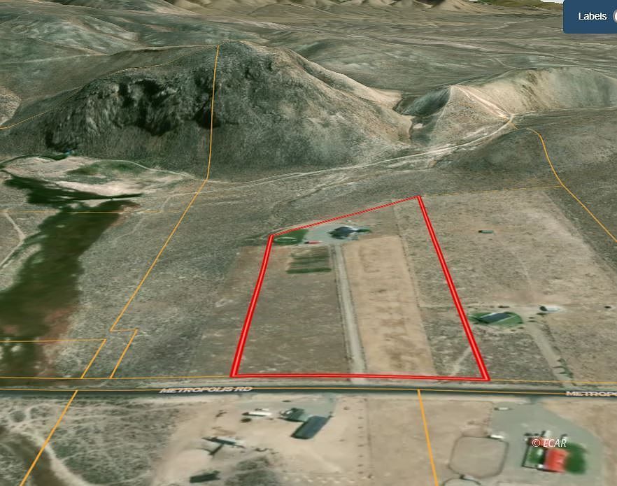 Modern 3 bedroom 2 bath manufactured home on foundation. Split floorplan, Office and family room plus a large laundry room that leads to huge pantry. Breezeway off laundry to 3 car garage. Building and garage are full of building supplies for a tiny home which was started on the property. All supplies remain with the property, tractor appliances and misc. Fenced acreage gated off Metropolis. Road. Shown by appointment Only! Buried irrigation and water rights for fields coming into property.
