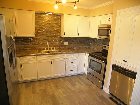 Everything looks new. Freshly painted, all new flooring, new light fixtures, carpeting. New furnace, new windows, all baths updated. Beautiful kitchen with new stainless steel appliances, countertop and glass tile backsplash. 4 bedrooms and 3 full baths. 3 fireplaces. Huge yard and big 2 car attached garage.