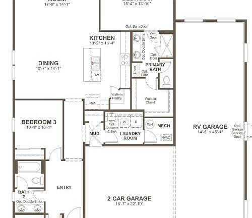 Ask about Special Financing - as low as 3.99% on this home! 15x45' 3rd car garage, perfect for your boat or antique car or Jumping Hoops. Will fit a Recreational Vehicle, Bus/food truck, etc.! Enjoy single-floor living at its finest with the thoughtfully designed Bronze plan. The heart of the home boasts a well-appointed kitchen with a center island and walk-in pantry, a dining nook and an adjacent great room. Other highlights include an elegant primary suite with an expansive walk-in closet and private bath, a central laundry and an attached RV garage. You’ll love the professionally curated fixtures and finishes selected by our design team! Large homesite with 18x10' patio plus RV Cleanout and Fireplace. Pictures are examples.