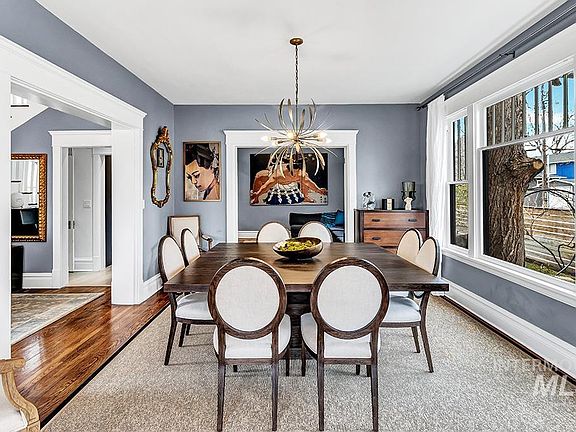 A fresh take on a classic 1900 Craftsman Foursquare set on a prime corner lot on the desirable East side of Harrison Boulevard! Living on this historic street is as close as you can get to stepping back in time to Boise's early days as a fledgling city, lined with towering shade trees and jaw-dropping architecture. Built at the turn of the century, this grand residence has been beautifully updated and expanded to offer everyday comforts that blend modernity with a love of tradition. The living quarters are filled with stately yet flexible spaces, featuring original grid-lined wood windows, hardwood floors, and sophisticated millwork woven with contemporary, yet elegant touches. The gourmet kitchen underwent a complete renovation in 2020, showcasing sleek custom cabinetry, built-in Bosch® appliances, luxe surfaces, and brilliant storage solutions.