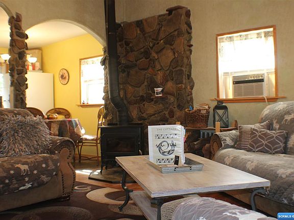 - LIVING ROOM: Wood Stove, Blinds, Ceiling Fans, Drapes/Curtains