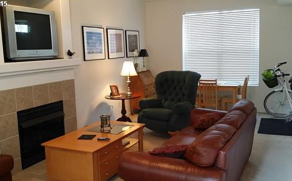 Comfortable condo with open plan. Additional space of kitchen could be den/second bedroom. Private patio to enjoy with small yard.