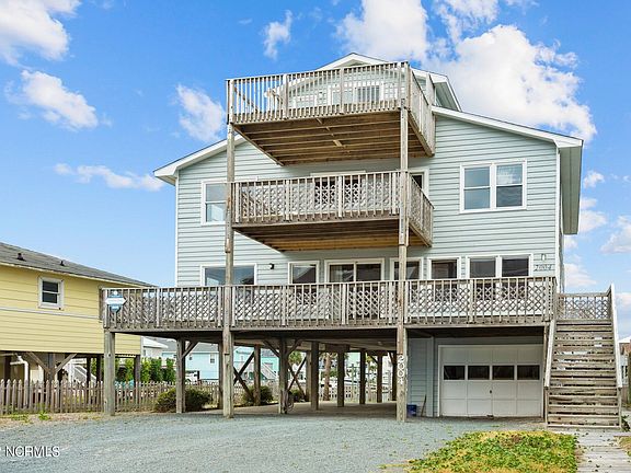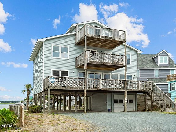 PRICE DROP!!! Location Location Location!!! Rare Opportunity on Topsail Island Amazing Views. The same family had the home custom built and has owned since 1989 so it's built to last. Cedar Siding. Can't beat the location. Water Views from any room. On the Canal Front right in the center great views of the Canal and ICWW. Deep water with a Boat Dock able to fit 2 Boats 1 on either side. Huge Driveway with covered parking and a nice size garage with plenty of storage and laundry in the garage. Beach access right across the street. 10 minutes and you can be in the ocean by boat. Home has 5 Bedrooms, Formal Dining Room off the Kitchen and Office or extra Flex Room. Also has 2 Kitchens with 2 possible 3 living areas. 3 Full Bathrooms. Great Loft area with incredible Views of the Ocean. Room to spread out with those big family get togethers or great for continued rentals. Nice Size Outdoor Shower. New HVAC just installed. The other unit is 8 years old with 2 years left on the warranty. This home has so much to offer. Most of the Windows have been upgraded along with the sliders. Roof was replaced in 2014. 2 upper decks ocean side have been replaced. This opportunity doesn't come along often. Don't let this pass you by. Call Today!