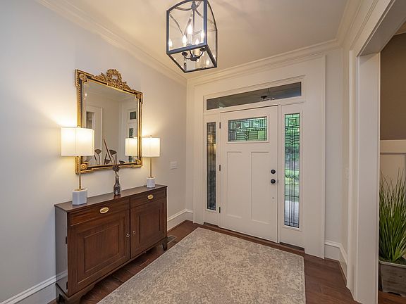 Custom built home with all the perks inside and out nestled on a wooded lot overlooking a pond. Every detail has been thought out by the original owner and will be evident as you enter the winding driveway down to the house. Professionally landscaped and maintained, the outside is a true oasis. Step down to the firepit area by the pond, listed to the sounds of the waterfall fed by the pond from outside or inside your new home. Inside, heavy moldings, board and batten details, designer lighting and details impress throughout. Coffered ceiling in great room, custom bookcases and cabinets throughout the home, gorgeous hardwood flooring on main level, cedar closet upstairs. Owners suite overlooks the pond and has a recently remodeled bathroom. Additional bedroom with private bath on first floor and two more bedrooms upstairs. Large kitchen with island is a cook's dream. Wolf oven with 6 burner cooktop, walk in pantry, serving bar with wine fridge, eat in area that opens to a keeping area with second fireplace. From there step out to your covered screen porch with outdoor grill vented to exterior. Spectacular sights and sounds await you in your large sunroom overlooking the pond. Automated shades filter the light or open the windows and listen to the calming sounds of the waterfall. Large laundry room and 3 car garage with epoxy flooring. Generator for those pesty storms, tankless hot water heater, septic has been maintained every year, encapsulated crawlspace.