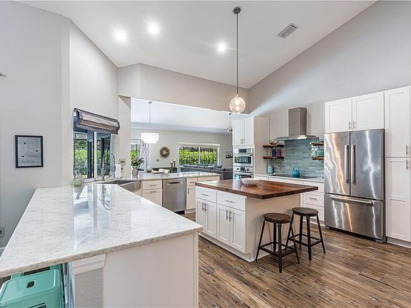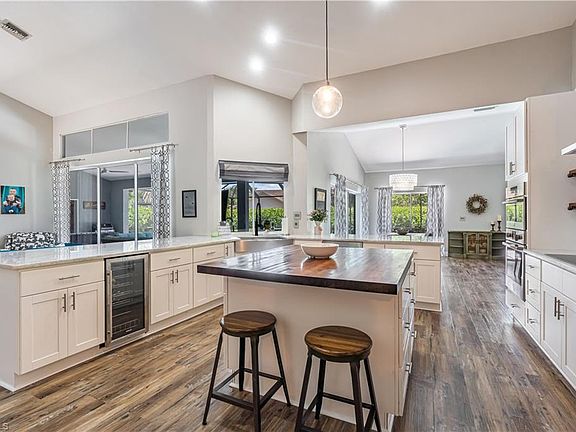 H.16080 - Fabulous remodeled home with 3 bedrooms plus a den or 4 bedrooms. Everything has been done here, beautiful finishes throughout. Lifeproof flooring, new wood cabinetry in kitchen with large prep island topped with butcher block. The upscale appliances include a builtin wine cooler. This wide open great room is perfect for friends and family to gather. A powder bath is conveniently positioned off the great room. The master suite is all redone with large closet, all new bath and sliders to the lanai. The 2 guest bedrooms share a beautiful guest bath and closes off as a 2 bedroom suite. A 4th bedroom also can be a perfect den or office with closet and bay window. The outside area is perfect for large or small gatherings. The pool has been resurface and new tile accents the waterfalls. All surrounded by a privacy hedge. The large lot sits on a quiet cul-de-sac street. Imperial Golf Estates is a highly desired neighborhood located in the center of all North Naples has to offer. Close to parks, the beach and some of the best restaurants in the area. Only 30 minutes to the airport too. Imperial Golf Club memberships are optional.