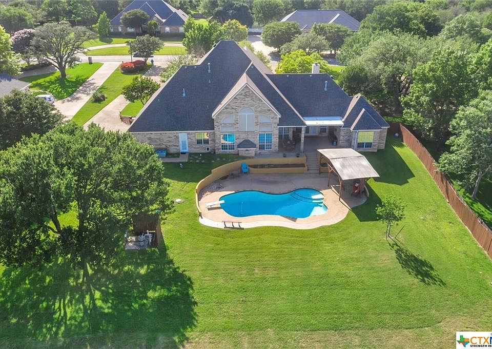 This home is the perfect multi-generation solution and is located just minutes from gorgeous Lake Belton, Miller Springs Nature Center, city parks and trails. This elegant home sits on over an acre backing on to greenbelt, and a backyard perfect for those looking for more outdoor space, including a swimming pool, covered patio and a new playscape and firepit. This 5 bedroom home includes 2 master suites both on the main level. An ideal property for two home office set ups! To relax, head to the Den for movie nights! A well designed kitchen, dining and living area creates a wonderful hub for the family to gather. This energy efficient home also has new Nest thermostats and new heat blocking tint on all sun-facing windows. The microwave, dishwasher, hot water heater and pool pump were all replaced in 2021. The impeccably maintained front yard includes new landscaping, and a circular drive. A home in the City, close to all the conveniences, yet with country views in a park like setting