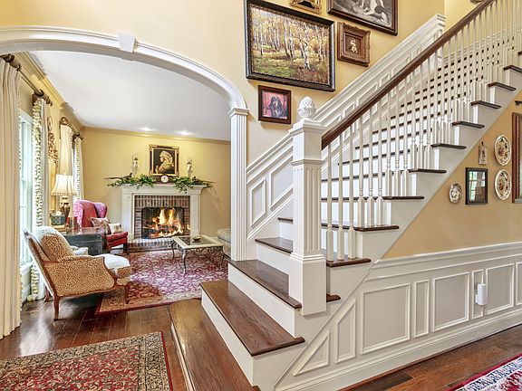 Welcome to this exceptional brick home offering an incredible blend of classic charm and amenities, all set against stunning river views. This spacious property lives like a 5 bedroom home and features a full basement, a 4-car garage, and an abundance of storage throughout, ensuring plenty of space for all your needs. Step inside to discover a beautifully appointed gourmet kitchen, equipped with a 43-inch La Cornue range, custom solid hickory cabinetry, Bosch dishwasher, and a refrigerator with matching hickory covers. The center island and granite counters provide ample space for cooking and entertaining, while the Italian tile backsplash and can lights add an extra touch of sophistication. Hickory hardwood floors flow throughout the first floor, including the inviting formal living room and dining room, where over 100-year-old columns and a striking brick accent wall bring timeless elegance. A cozy library with Ralph Lauren wallpaper and a masonry wood-burning fireplace is the perfect spot to unwind, while the large laundry room offers convenience. The home also features an impressive 10x40 covered back deck, ideal for enjoying the river views and outdoor living. The master suite is a true retreat, with two walk-in closets featuring custom cabinetry and a luxurious bathroom with marble floors, a clawfoot cast iron tub, and stunning finishes. Two additional bedrooms and a full bath are located on the second floor, offering plenty of space for family and guests. The in-law suite, complete with a full bath, separate kitchen, and walk-in closet, provides privacy and comfort for extended guests. The fully finished basement includes a bonus room, full bath, bedroom, and a second washer/dryer hookup—ideal for extra living space or guests. This home has been meticulously maintained with updates such as a 2015 HVAC system (3 units) and a 300-foot well with a new pump installed in 2017. The drainage system and downspouts around the home were updated about 4 years ago, ensuring worry-free maintenance. Additional features include a beautiful stone wall and brick courtyard, a white picket fence with a front gate, and concrete steps leading down to the river—perfect for enjoying the outdoors. This home truly offers everything you could want and more—combining elegance, functionality, and a prime location with breathtaking river views.