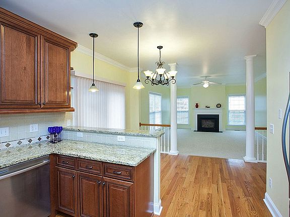 Move In Ready!Gorgeous warm hardwoods greet you at the door & run down the hall to the Dining Rm, Kitchen & Breakfast Area.Bright Family Rm -anchored by an inviting fireplace-accented w/columns.Kitchen w/granite counters,tile back splash,handsome cabinetry, lots of storage.Huge Master Suite w/ trey ceiling-generous closets-garden tub & more!Spacious Laundry Rm.Bonus Rm for office or entertainment.A 300 sq ft deck to enjoy while overlooking the fenced in landscaped backyard.SO worth the LOOK!