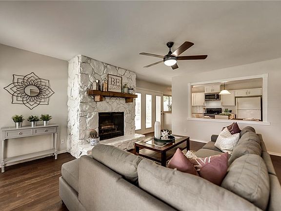 Beautifully renovated home with tons of character and charm! New wood floors in living areas, gorgeous kitchen with gorgeous 3cm granite countertops, modern subway tile backsplash and stainless appliances (fridge conveys if buyer desires), awesome stone fireplace with cedar mantle! Freshly painted in and out with modern gray colors. Large master bedroom with walk-in closet and modern bath. New carpet in bedrooms. Updated hall bath with gold fixtures, granite countertop & new floors. Huge backyard & covered patio! Steps away from great greenbelt area with walking trail that leads to small lake! Owner Agent.
