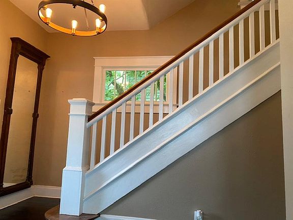 Dreamy farmhouse style with many updates! Completely recently rewired! Fresh paint and refinished hardwood floors. Updated bath with double vanity and sliding barn door. New SS appliances and gray cabinets. Smart laundry chute on all levels. Features window seat, trendy light fixtures,many new windows, new front door and exposed brick. New front porch will be the place to add a swing. Small pole barn with huge concrete patio and privacy fenced yard.