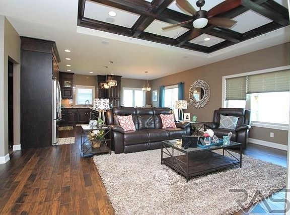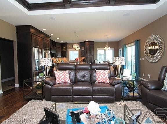 WOW!! Custom built by Trademark, this home offers 4 beds, 3 baths & HUGE oversize 3-stall garage. Grand Entrance has stone veneer & a beautiful custom door. The open concept between the living room & kitchen makes a nice conversation piece for all to enjoy. The coffered ceilings & gas fireplace are a nice focal point. This kitchen has it ALL: double oven, gas range, stainless steel appliances, HUGE granite island, custom tiled backsplash, knotty alder cabinets & slider to the covered deck. The laundry room/mud room looks as though it came out of a magazine. The family room won't disappoint as this room offers a modern tiled gas fireplace, a theatre system & bar. There are 2 additional bedrooms downstairs w/ a custom tiled bathroom. Your feet won't be cold anymore as there are heated floors on most of the tiled surfaces. Some but not all the upgrades include: epoxy floor, hot/cold in garage, surround sound & many more amenities.