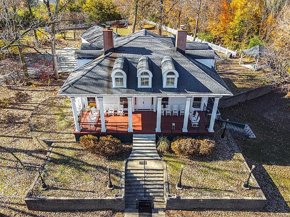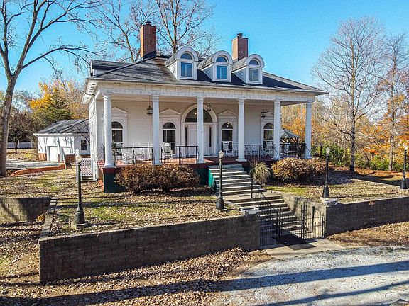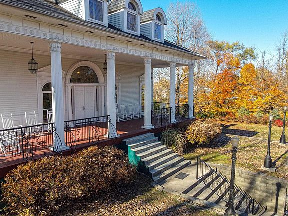 A Must See! Beautiful custom built one-owner Colonial Mansion on 3.63 acres, a private wooded setting. An additional 1.42 acres could be available. This impressive home will Wow you as you walk up the front steps to the massive covered front porch with columns. Walk inside to the gorgeous front entry and be amazed at all the unique features it has to offer, like hand carved trim, imported flooring, beautiful chandeliers, crown molding, specially made curved windows, window seats and much more. Most of the tile and the exotic wood flooring was imported from Honduras. Formal dining room with wood burning fireplace and lovely chandelier. Check out the custom flooring in the piano room it will take your breath away. Living room has custom windows, hand made carved trim ,a hearth from Honduras and a gas log fireplace. Master suite has walk out to a screened porch and attaches to the unique curved walk way, surrounded by trees it's a beautiful place to sit and enjoy the view. Or warm up to the electric fireplace. Walk in closet and extra large master bath. Three large bedrooms and a bonus room with lots of storage on the 3rd floor. Approximately 5000 square feet designed and made with love. Two car detached garage.