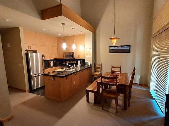 This is a beautiful 3 bedroom, 2 bath condo at Solstice, close to Eagle Lodge. There is a king in the master bedroom, a queen in the 2nd bedroom and two bunks in the 3rd bedroom. The deck off the living/dining room faces east to get the morning sun. No worries about staying warm as the heat is included from a common area boiler, as is the propane for the large barbeque on the deck. You only pay electric and tv/internet. The unit is carpeted throughout except for slate in the kitchen area and bathrooms. A stack washer and dryer is in the unit too. Parking for 2 vehicles is available in the underground heater shared parking garage. There is also a jacuzzi at the complex. No smoking and no pets please. This is a seasonal rental for 5 months minimum. Excellent credit and references required. Again, no smoking, no pets, and parking for 2 cars only (temporary parking for guests available).