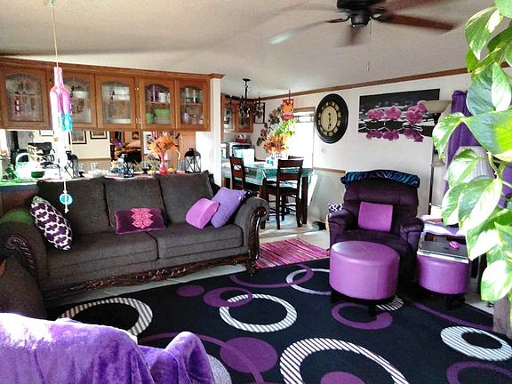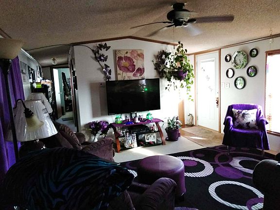 1280 sq ft 16x80 3 BR, 2 bath mobile home; 6" exterior walls w/drywall interior; Vaulted ceilings; 2 skylight; Newer floor coverings; All appliances stay including washer and dryer. Clean and neat; 2 storage sheds; Located in Country Meadows.