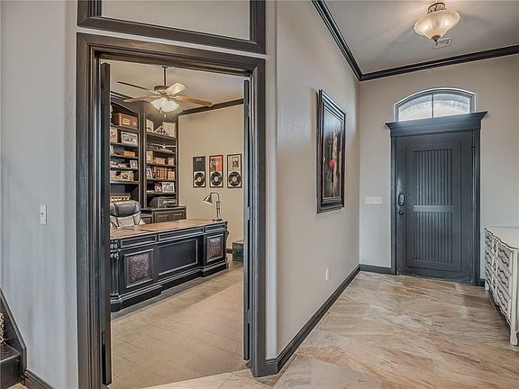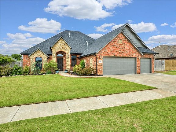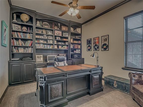 This quality custom home by Jason Powers features your favorite upgrades throughout!Gorgeous ebony stained custom cabinets & crown moldings.The "Chef's" Kitchen showcases 3CM granite counters,huge island / sit down bar,stainless appliances include gas cook top w/ decorative custom vent hood.Tumbled marble subway tile splash,pull out shelves & walk-in pantry. Stacked stone gas log fireplace, designer lighting fixtures & both wood look tile & over sized tile flooring thru all main areas.Flex space off Kitchen is great play or exercise rm. Spa like Master Suite has jetted tub & sep. shower w/ glass tile detail & arched ceiling. Convenient access thru HUGE Master Closet into the Laundry Rm w/ great storage, granite counter w/ sink, & bench. Handsome Study features a wall of custom bookcases.Game rm & 1/2 bath up w/ snack bar area featuring sink & beverage cooler.In-ground storm shelter in garage.Water softener,security system, plus so much more. Put this one on your short list to see.
