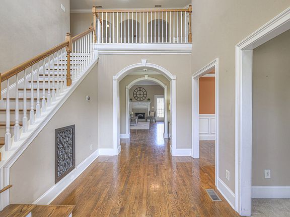 Lovely all-brick home offers beautiful hardwood floors and an open flow main level. An office and a formal dining room adorned with wainscoting provide ample space for spreading out. The living room features a soaring ceiling and a cozy fireplace and opens into the the warm, inviting kitchen with granite counters and bartop seating, along with a breakfast area. Elegant trim and arched doorways add a touch of sophistication to this charming home. The primary suite is on the main level, while upstairs holds 2 more bedrooms, a flex room (could be 4th bedroom), walk-in closets, and another full bath. Out back, enjoy the spacious deck overlooking a large field-no back yard neighbors! Great location, minutes to I-65, groceries, shopping, restaurants and more. Hampton Springs community amenities include a pool and playground area.