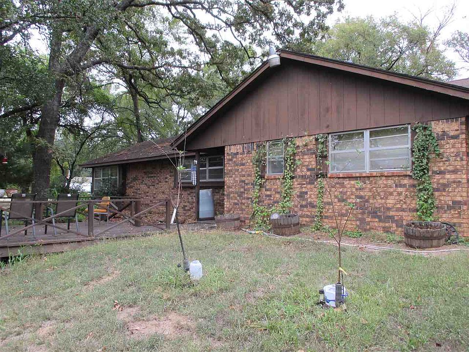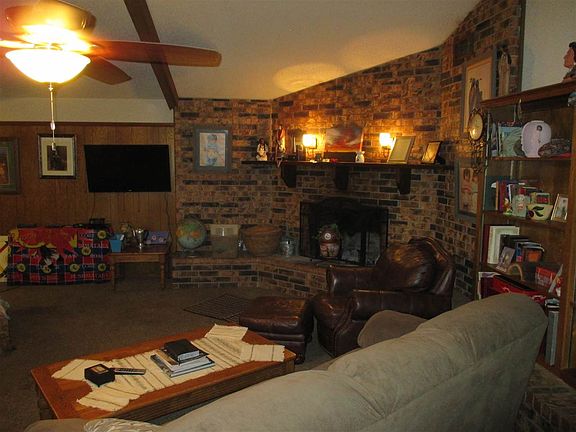 3/2/2 brick house approx.2052 sq.ft with ch/a,beam ceiling,ceiling fans,built-in bookcase,fireplace,french and sliding doors,large family room,office,foyer,pantry,patio,front deck,detached garage,storage shed,fenced yard and mature shade trees.This is located in a very pleasant neighborhood.