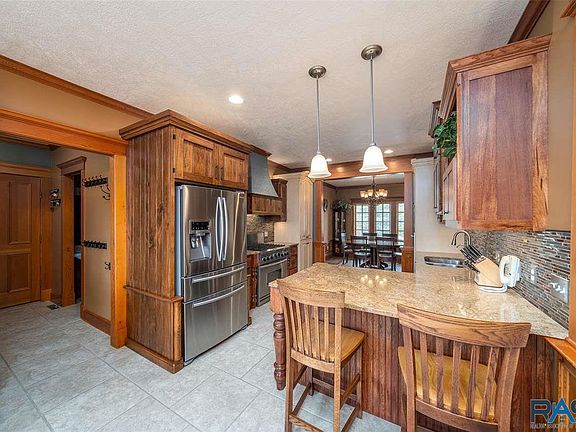Striking, Richly Appointed Ranch Walkout Fabulously Located On Huge Corner Lot In The Bluffs In Brandon! Chef's delight kitchen w/ oodles of cstm cabs, sparkling granite counters, tile backsplash, high end appliances & convenient breakfast bar that leads to the roomy eat-in dining area. Great formal dining w/ beautiful crown molding. Welcoming living room w/ soaring vaulted ceilings & lovely gas FP plus arched French Cathedral doors leading to the bedrooms. Private main floor master suite w/ crown molding, his & her vanity, walk in shower, heated floors & huge WIC w/ cstm organizers. 2 more sizeable beds, full bath & highly desired main floor laundry finish out the main. The expansive lower level hosts an enormous family room, 2 spacious beds, bonus hobby room & another bath. Oversized, heated 3 stall w/ 8' doors, epoxy flooring & hot & cold water plus convenient core space. Meticulously & lushly landscaped w/ mature trees, enormous deck, handy indoor/outdoor dog kennel & so much more!