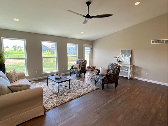 This 3 bedroom 2 bath Ranch home has a 2 car garage that is 2' deeper. Features in this home include Vaulted Ceilings & Laminate Floors in the Great room, Kitchen & Breakfast room, 42" White, Soft Close Kitchen Cabinets, Island w/overhang, Granite countertops w/ 9" Deep Under-mount Super Single SS Sink, Can Lighting, Stainless appliances, Window Wall in Great room w/ more Can Lighting & a 3-0 full lite door w/ blinds in between glass going out to the 18' x 14' concrete patio. The master bath has a 5' shower w/ seat & semi frameless shower door, double bowl, adult height white vanities w/ drawers & upgrade countertops. more features include Custom Paint color, 5 Panel Doors, 4 1/4" base, Egress window in LL, Rough in for future bath, Fullly Sodded Yard, 30 Yr. Architectural Shingles & much more.