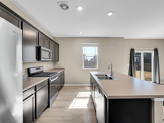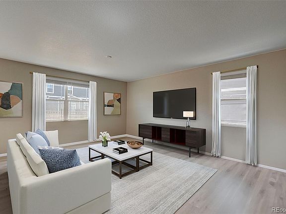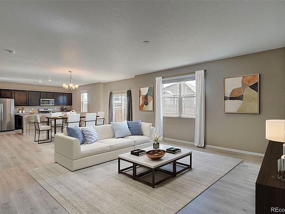 Welcome home to the High Point at DIA neighborhood! Minutes from DIA, E-470, I-70 and transit, this immaculate 3 Bedroom plus a loft, 2.5 Bathroom newer home is meticulously maintained by the original owner, shows like new, and is truly move in ready. Upon entering the 3201 SQFT home you are greeted by the spacious foyer and airy 9 foot ceilings throughout. Continue to the large great room and main living area, with plenty of natural light. The spacious open floor plan leads to dining area, and kitchen with stainless appliances, gorgeous dark wood cabinetry, large pantry, gas range and large kitchen island with plenty of space for meal prep and casual dining. The upper level features a stunning owner's suite, with large walk-in closet. The ensuite primary bathroom has a walk-in shower, double vanities, water closet and additional linen closet. Upper level also has 2 generously sized additional bedrooms and a centrally located loft, perfect for home office, upper family room, or converting into a 4th bedroom. A full bathroom with double vanities and a convenient laundry room complete the upper level of the home. The unfinished basement complete with rough-in plumbing is ready for countless possibilities and additional living space. This home includes a 2 car garage, central A/C, new roof (July 2024) with Grade 4 hail resistant shingles, and has a 'smart home' connected package. The exterior features a covered front porch, mature front and rear landscaping with trees, grass and shrubs, front and back irrigation system and a large, fully fenced, backyard space to enjoy entertaining, mountain views and tranquility. This convenient location provides easy access to the community pool, nearby parks, trails, Gaylord Rockies resort and coming soon…Painted Prairie Town Center filled with many dining and entertainment options.