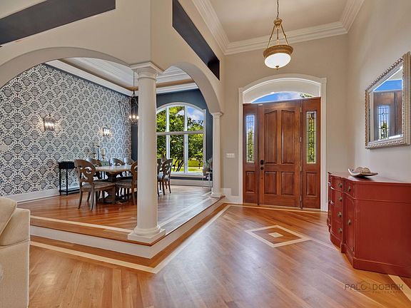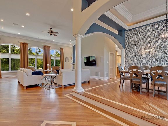 Stunning custom-built, all brick ranch home nestled on an almost two-acre lot offers gorgeous open floor plan, American Cherry hardwood floors, 13-foot ceilings, and striking finishes! Grand entryway with views of the raised dining room and massive living room! Gourmet kitchen masterfully appointed with stainless steel appliances, granite countertops, huge island with prep sink, breakfast bar, and eating area. Sunroom graced with dome ceilings can be converted into an office. Private master suite presenting custom walk-in closets and luxurious ensuite with two vanities, soaking tub, and separate shower. Two additional bedrooms with a Jack and Jill full bath adorn the main level. Finished basement provides additional living space with generous rec room, full wet bar with bartop seating, fitness room, two additional bedrooms, full bath, and bonus room! Entertain in grand style in the backyard with built-in grill, brick paver patio, and open yard! Fantastic location near Deer Park shopping, downtown Barrington and more! 85k in upgrades!