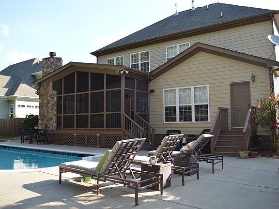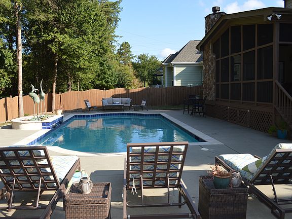 Nice partial stone 1.5 story home with 4 bedrooms, 4.5 baths, foyer, kitchen w/breakfast bar, living room, dining room and bonus upstairs. Home features fireplace, tray ceiling, double sink bath, spacious rooms, 2 car attached garage, front porch, large screened back porch, built in grill, and in-ground pool perfect for entertaining.