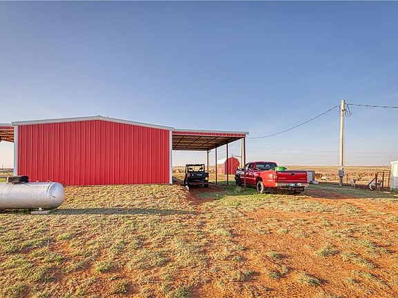RARE opportunity to own your own 12 acre homestead! This sprawling acreage has a cattle guard entrance, water hydrants for livestock and is cross fenced with new 5 and 6 wire barbed wire. There are two holding areas, conex for storage and a spectacular view of Western Oklahoma as far as the eye can see! The newly constructed rustic bunkhouse is fully equipped with kitchen, laundry and full bathroom. This additional living space is ideal for leasing as a hunting cabin or using as guest home. Just outside is a new in ground storm shelter, 15x30 lean-to with RV hookup with sewer. The garden has just been planted, and will be ready for you to harvest!