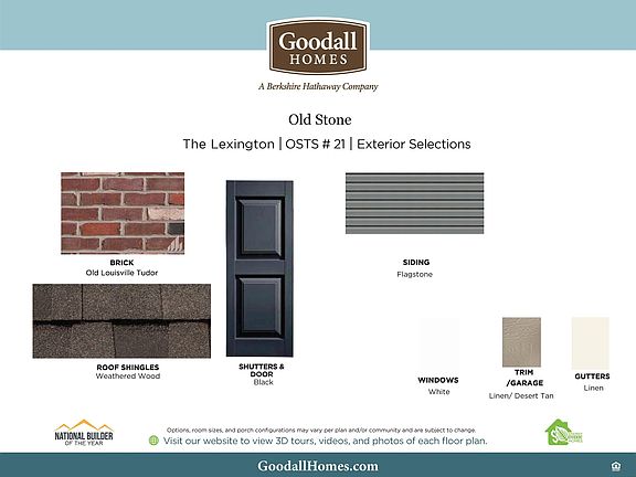 Under Construction-Under Construction The Lexington is one of five wonderful floor plans offered by Goodall Homes in the beautiful Old Stone community. This Lexington comes with 4 bedrooms 3 bathrooms and a wonderful flex area on the first floor that would make a wonderful home office. This home also features a wonderful bonus suite upstairs. Model Home located at 24363 Beacon Circle, Athens Alabama 35613, use GPS. Hours are Wednesday- Saturday 11-5 and Sunday 1-5.