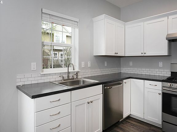 Charming end-unit townhome situated in a quiet neighborhood w/close proximity to shopping, parks & schools. Spacious floorplan with 2 bedroom suites! Laminate floors on main, large kitchen w/ gas range and SS appliances and open living room w/ gas fireplace. Upstairs hosts two spacious bedroom suites and laundry room. Just in time for spring & summer! Enjoy the new sod in the fenced backyard, a sweet little spot to unwind after a long day. Seller is a licensed Realtor in OR.