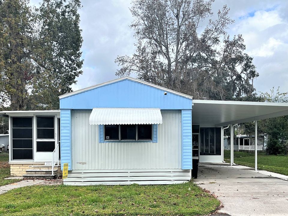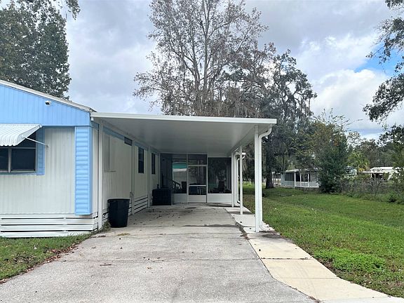 2 Bedroom - 1.5 Bath - 1983 - 840 sq ft - Mobile home in the 55+ Community of Southway Villa in Brooksville. Monthly fee is $510 and includes Park Activities and Amenities. Home has a great start with a few cosmetic touch ups needed. Carport/Driveway Extension was done in 2020. Rubber Roof was done 3 years ago. Two Car Carport with Driveway. Screen Porch. Kitchen has Wood Cabinetry and Comes with Refrigerator and Range. Dining Space seats a Table for four. Spacious Living Room with Ceiling Fan and Large Windows. Vinyl Window Enclosed Porch is off the Living Room. Screen Door takes you outside and has a cement walk way leading to road. Back inside is the Main Bedroom, nicely sized with En-suit Bathroom. En-Suite Bathroom has a step in shower with Tile Walls, small window, vanity/sink and a closet. Opposite End of the home is the 2nd Bedroom or Office. Bay Window and Faces the Street. Wainscoting around the room. Hall half Bath also has hookups for your washer/dryer, small upper window, cabinet, vanity/sink and closet with accordion door. Rock Design Linoleum Floor. Laminate Flooring. Textured Walls. Light Tan Paint throughout. Crown Molding. Brick Skirting around the Enclosed Porch. Gutters. Window Awnings. Mature Trees. Located at the End of the Street. Great Potential and Economical Way to live in a quiet Community. About the Park: Southway Villa Park is an Over 55 community of about 275 manufactured homes in a quiet wooded rural environment with deer, wild turkeys and other wildlife seen frequently in the park. Yet it is located within the city limits of Brooksville with complete city services such as water, sewer, trash pick-up, police, fire and emergency services. Park is within walking distance of major grocery stores, national chains such as Wal-Mart and Lowes, banking, restaurants, fast food and other services. Brooksville Regional Medical Center is less than five minutes (3 miles) away by car. Clubhouse has On-Site Management. Shuffleboard Area. New Paved Streets 2022. Must get Park Approval to be able to Purchase/Live within this Park. Park will do a Background Check, Income Verification, and a Credit Score of 640 or better is needed. Two Small Pets (30lbs or less) are Allowed and must be approved by the park.
