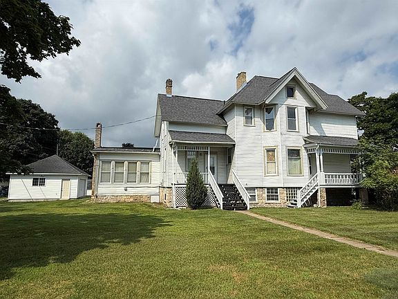 Plenty of room for everyone! 5-bedroom, 2-bath home on a rare 3-lot corner property! Enjoy beautiful hardwood flooring, high ceilings, and a bright 4-season sunroom with a cozy wood-burning fireplace. The kitchen features warm maple cabinetry, while a storage shed adds extra space for outdoor gear. Steel exterior.